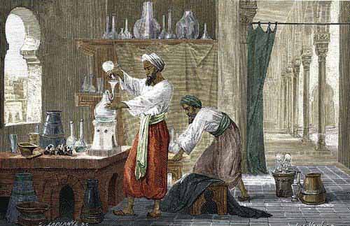 در قرن نهم، الکندی شیمیدان عرب، کتاب شیمی عطر و تقطیر را نوشت، سندی که حاوی بیش از صد دستور العمل برای ایجاد عطر با استفاده از روغن، مرهم و آبهای معطر بود که پایه و اساس آن بود. شیمی عطر مدرن شیمیدان ایرانی ابن سینا سپس این هنر را به کمال رساند و فرآیند استخراج روغن از گلها را معرفی کرد که هنوز هم استفاده می شود.