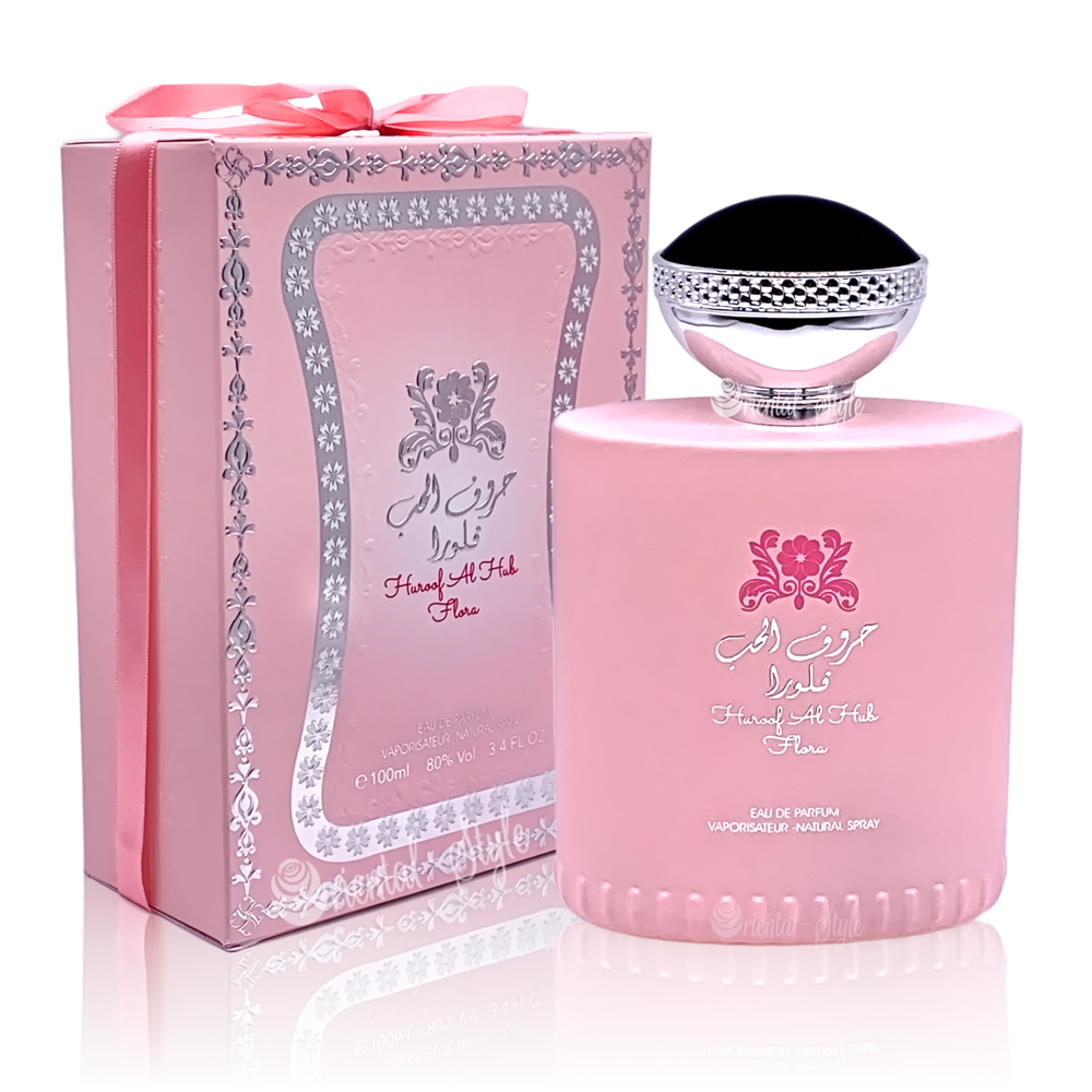 ادکلن حروف الحب فلورا از برند ارض الزعفران یک ترکیب گل پودری و زیبا با طراوت ظریف است.